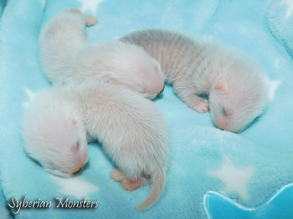 chocoalate blaze cinnamon siamese mitt 1/2 angora Ur. 05.08.2019r Miot Cali to ostatni tegoroczny miot i zarazem ostatnia niespodzianka. Calanmai zaczęła rodzić w nocy 05.08, jej poród był długi i ciężki, ponieważ maluszki urodziły się bardzo duże: 14,16,16 gram. W miocie mamy dwa samczyki i samiczkę. Jeden z samczyków, był nieco draśnięty podczas porodu na brzuszku, ale już wszystko się ładnie zagoiło. Maluszki ładnie rosną, a ich mama wzorcowo się nimi opiekuje.