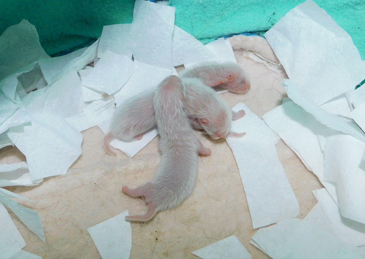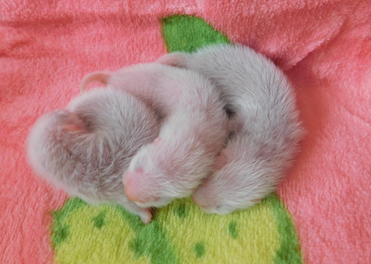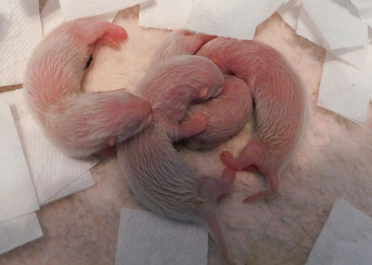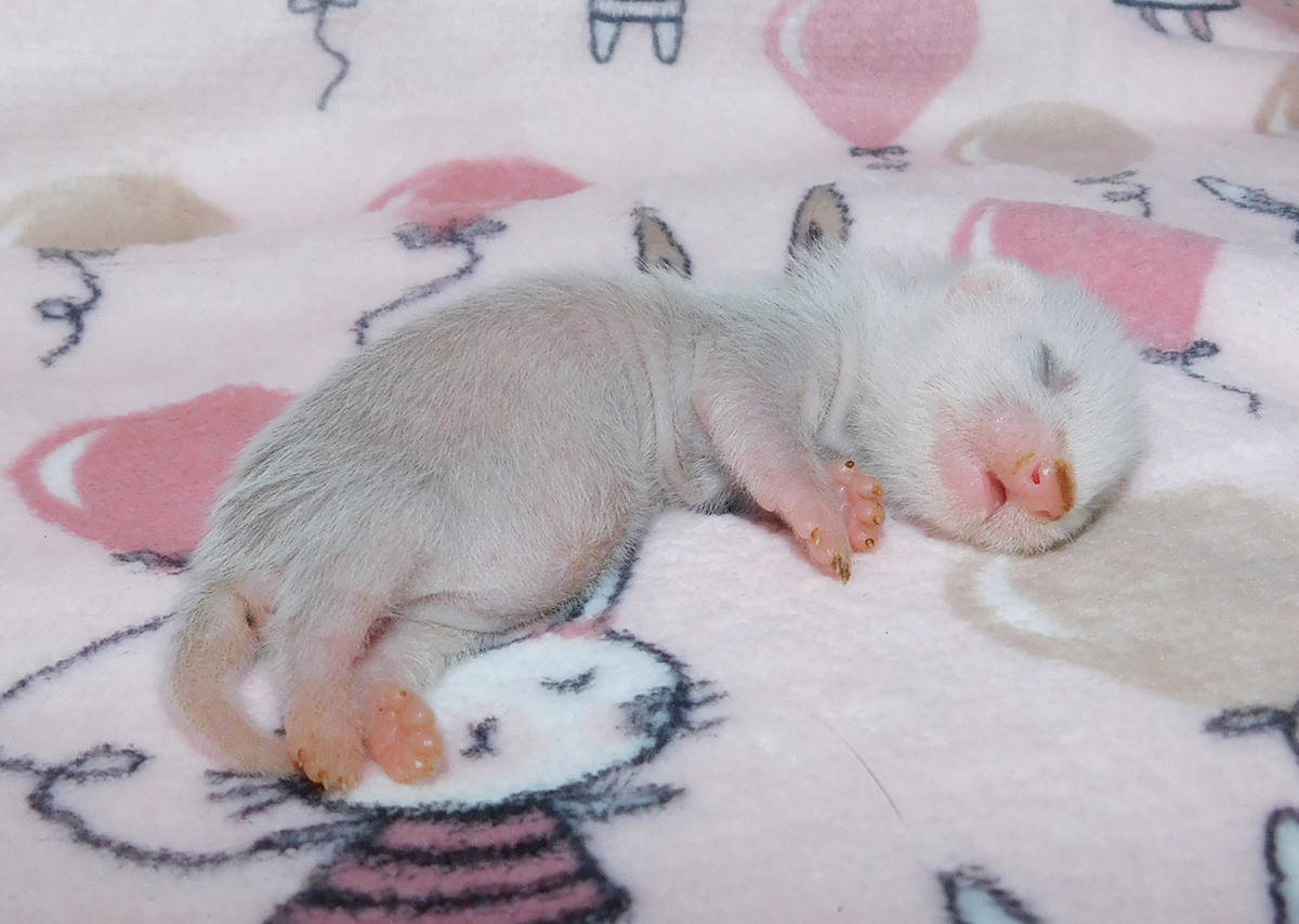 chocolate point 1/2 angora cinnamon mitt Ur. 22.04.2018r Idealnie w 42 ciąży przyszły na świat maluszki Chilli i Raphaela, a tym samym moje pierwsze tegoroczne maluszki. Maluszków urodziło się 5 w tym jeden martwy samczyk, który prawdopodobnie poddusił się w czasie porodu. Waga urodzeniowa maluszków to 10, 11, 12, 13 gram. Niestety po pierwszej dobie opuściła nas najmniejsza z samiczek, podejrzewam, że mogła zostać przygnieciona przez mamę.