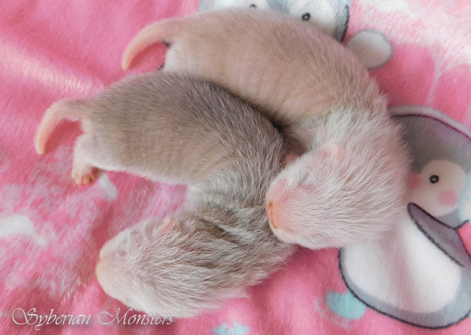 chocolate point cinnamon mitt angora Ur. 02.04.2020 Xayah zaczęła rodzić w południe 02.04 i był to długi poród z ponad godzinnymi przerwami. Pierwszy maluszek był bardzo duży i w dodatku był źle ułożony (tylnymi łapkami do przodu), był podduszony, dlatego został na kilka minut zabrany od mamy zagrzany i umyty, po oddaniu Xayah zaczął w końcu głośno piszczeć. W tym czasie byliśmy już na gorącej linii z naszą panią wet, gdyż podejrzewałam, że Xayah może nie urodzić sama reszty maluszków. Na szczęście ponad 2 godziny później, kiedy już mieliśmy zbierać się do weterynarza Xayah zaczęła dalej rodzic, na świat przyszły kolejne 3 maluszki. Niestety pierwszy urodzony maluszek (samczyk) odszedł w 2 dobie. Pozostała trójka maluszków ma się dobrze i ładnie rośnie. W miocie Xayah mamy dwie samiczki i samczyka, wszystkie maluszki będą półangorami. Xayah