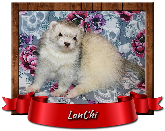Data urodzenia: 14.05.2016 Data śmierci: 17.08.2020 Miejsce urodzenia: Warszawa (Polska) Hodowla: prywatna*pl Umaszczenie: black roan mitt Rodzaj sierści: 1/2 angora Waga: 800~1100g Genealogia: >>klik<< Kastracja: nie Chip: 616093900297364 Numer OSHF: --- Mioty: GG, DH, MKR Niestety po tym jak okazało się, że Gisele nie ma instynktu macierzyńskiego postanowiłam dołączyć do stadka jeszcze jedną samiczkę. A ponieważ od zawsze malałam słabość do „skarpeciarzy” dlatego mój wybór padł na LanChi, która pochodzi z domowej prywatnej hodowli. LanChi nie ma długiego znanego pochodzenia i w zasadzie początkowo miała być samiczką o standardowej sierści, jednak ten czarny nosek całkowicie mnie zauroczył. Był to dobry wybór, ponieważ Lan to bezkonfliktowa i zrównoważona samiczka oraz świetna matka.