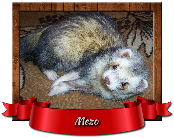 Data urodzenia: 16.05.2005 Data śmierci: 25.04.2008 Miejsce urodzenia: Sobótka (Polska) Hodowla: prywatna*pl Umaszczenie: black roan mitt Rodzaj sierści: standard Waga: 1400~2400g Genealogia: >>klik<< Kastracja: tak Chip: 941000001514631 Numer OSHF: --- Mioty: --- Mezo był mi najbliższą fretką. Gdy do mnie trafił miał zaledwie 7 tygodni, był maleńki, ale od razu podbił moje serce. Najbardziej, szalony z wszystkich chłopaków chłopaków potwornie zazdrosny. Gdy brało się na ręce kogoś innego niż on, to robił wszystko, aby i jego wziąć. Mezo uwielbiał spacery. Gdy tylko zobaczył szelki lub usłyszał dzwoneczek już był gotowy do wyjścia. Był wybredny kulinarnie, choć w ostatnim okresie to się akurat zmieniło. Mezuś to straszny złodziejaszek, kradł prawie wszystko: od drobnych przedmiotów, poprzez papucie, pilot od telewizora, ale i też duże koce. Wszystko chował do swojej skrytki za telewizorem. Dom bez niego nie jest już taki sam… jednak on jest zawsze ze mną, w moim sercu.