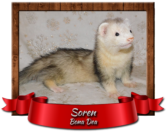 Data urodzenia: 20.08.2023 Miejsce urodzenia: Wrocław (Polska) Hodowla: Bona Dea Umaszczenie: black roan mitt Rodzaj sierści: 1/2 angora Waga: 805g Genealogia: >>klik<< Kastracja: nie Chip: 616093902568590 Mioty: -- Soren nie jest fretka zaplanowana na ten rok, jak to u mnie zwykle bywa jednak ze względu na pewne okoliczności zdecydowałam się powiększyć stadko o tego małego rozbójnika 😉 Miał być to ciapowaty spokojny samczyk, chłopak jednak na dzień dobry pokazał miejsce w szeregu Greyowi, który faktycznie jest ciepła kluchą 😉