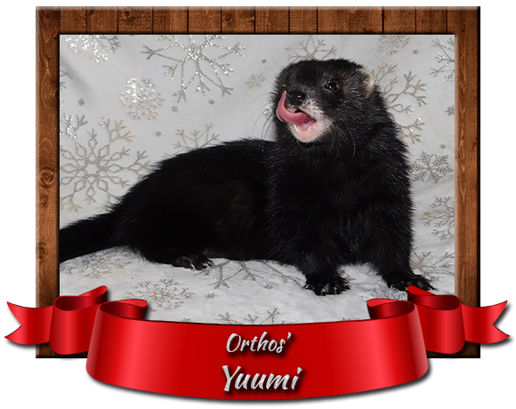 Data urodzenia: 20.05.2019 Miejsce urodzenia: Jaworzno (Polska) Hodowla: Orthos Umaszczenie: black solid Rodzaj sierści: 1/2 angora Waga: 1050g Genealogia: >>klik<< Kastracja: tak Chip: 616093900742645 Numer OSHF: --- Mioty: brak Mafalda Mogua, a po domowemu Yuumi to zupełnie nie planowany nabytek. W tym przypadku dałam się trochę namówić właścicielowi zaprzyjaźnionej hodowli, ale kto nie uległby urokowi tego czarnego diabełka ;). Jednak nie żałuję ponieważ Yuumi to najbardziej radosna i skoczna fretka jaka widziałam, poza tym mimo wyglądu czarnego diabełka z charakteru to od samego początku aniołek, który nie wie do czego służą ząbki. Ze względu na zbliżony wiek, jej wierną towarzyszka zabaw jest Nashi.